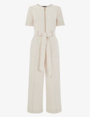 WHISTLES Cropped denim jumpsuit Selfridges