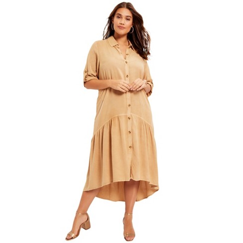 June Vie by Roaman s Women s Plus Size Ruffled Shirt Dress 14 16 Beige