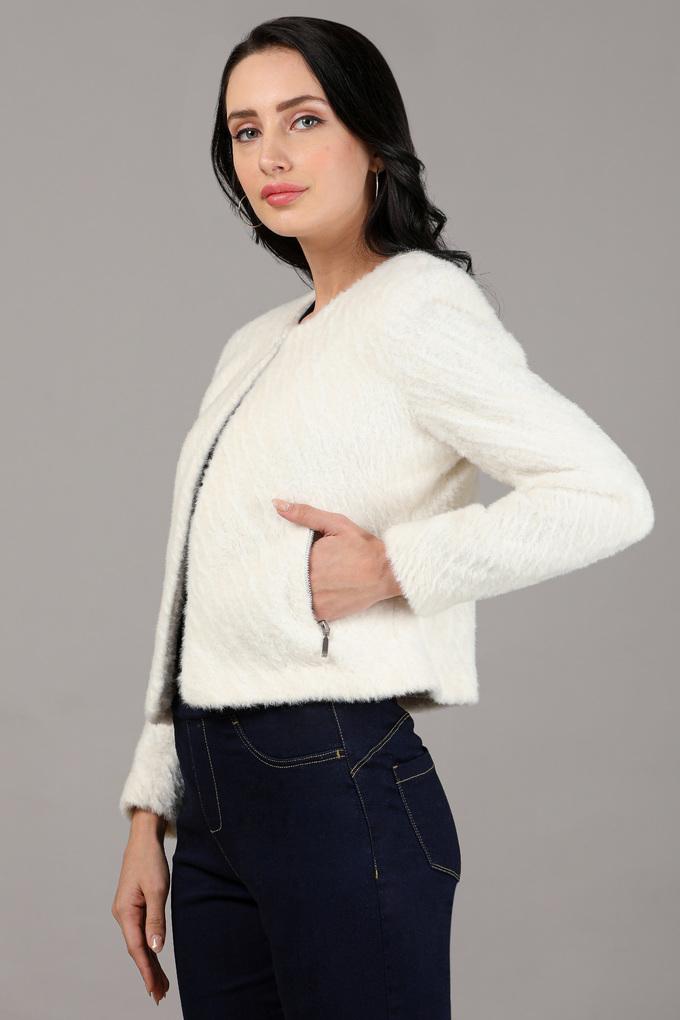 Buy STOP Off White Solid Regular Neck Fur Womens Winter Wear