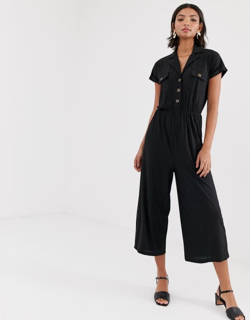 Short sleeve button sales up jumpsuit, ASOS DESIGN button detail shirt jumpsuit with short sleeve sales