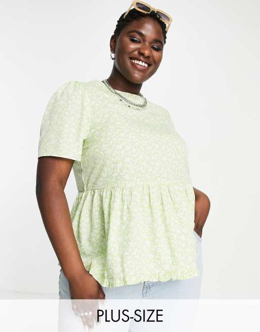 Smock top sales new look, New Look Curve peplum smock top in green floral ASOS sales