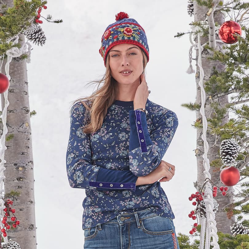 Sundance Tops Nwot Sundance Loretta Thermal Tee Navy Floral Xs