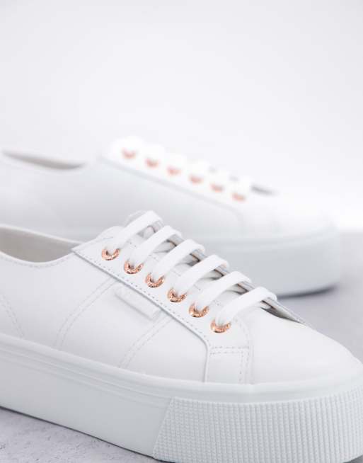 Zapatillas blancas con ojales dorado rosa de cuero 2790 de Superga