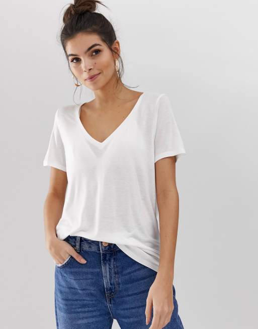 T shirt bianca sales scollo v, ASOS DESIGN T shirt bianca con scollo a V ASOS sales