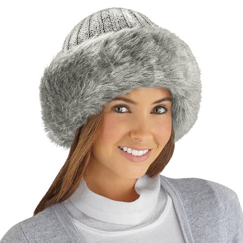 Collections Etc Faux Fur Trimmed Winter Fashion Hat Light Grey