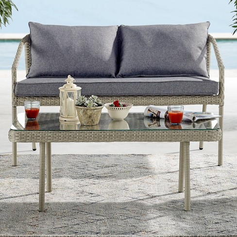 All weather Wicker Windham Outdoor Coffeee Table With Glass Top