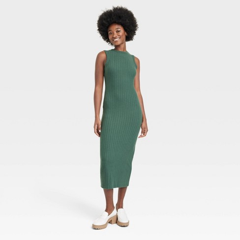 Women s Rib Knit Midi Dress Universal Thread Green S Target