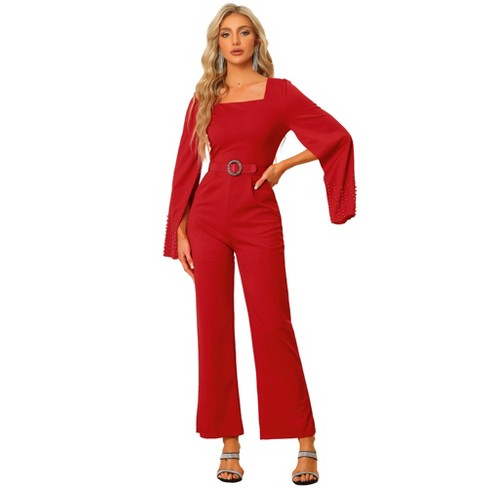 Target sales red jumpsuit, Allegra K Women s High Waist Wide Leg Belted Button Long Overalls sales