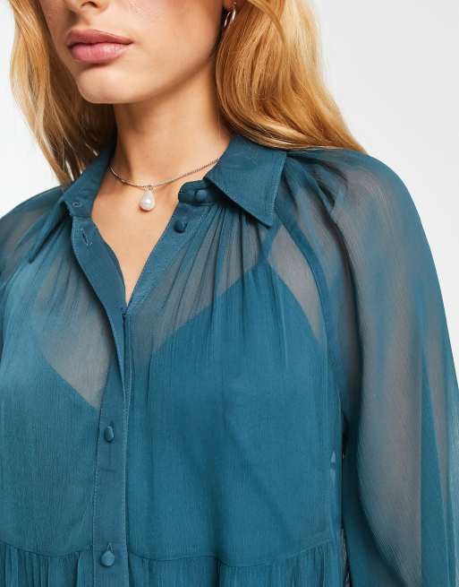 ASOS DESIGN tiered button through maxi shirt dress in teal ASOS