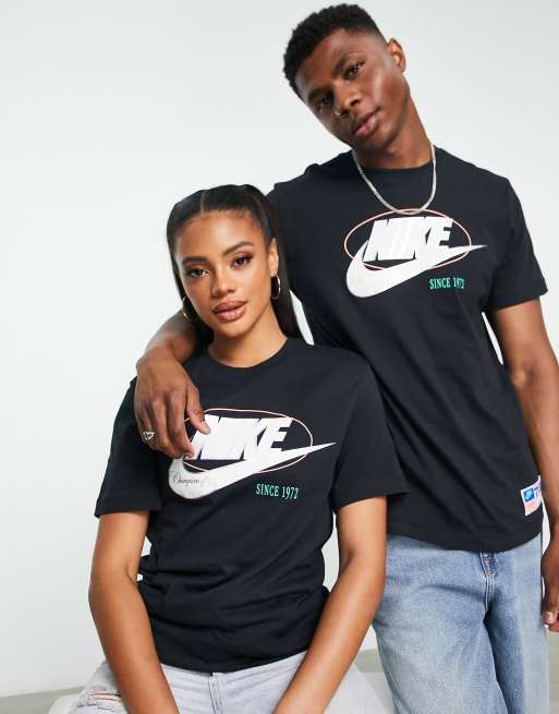 Nike T shirt unisexe avec imprim universitaire au dos Noir ASOS