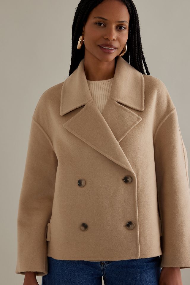 Anthropologie sales camel coat, Selected Femme Meghan Crop Recycled Wool Blend Double Breasted Coat sales