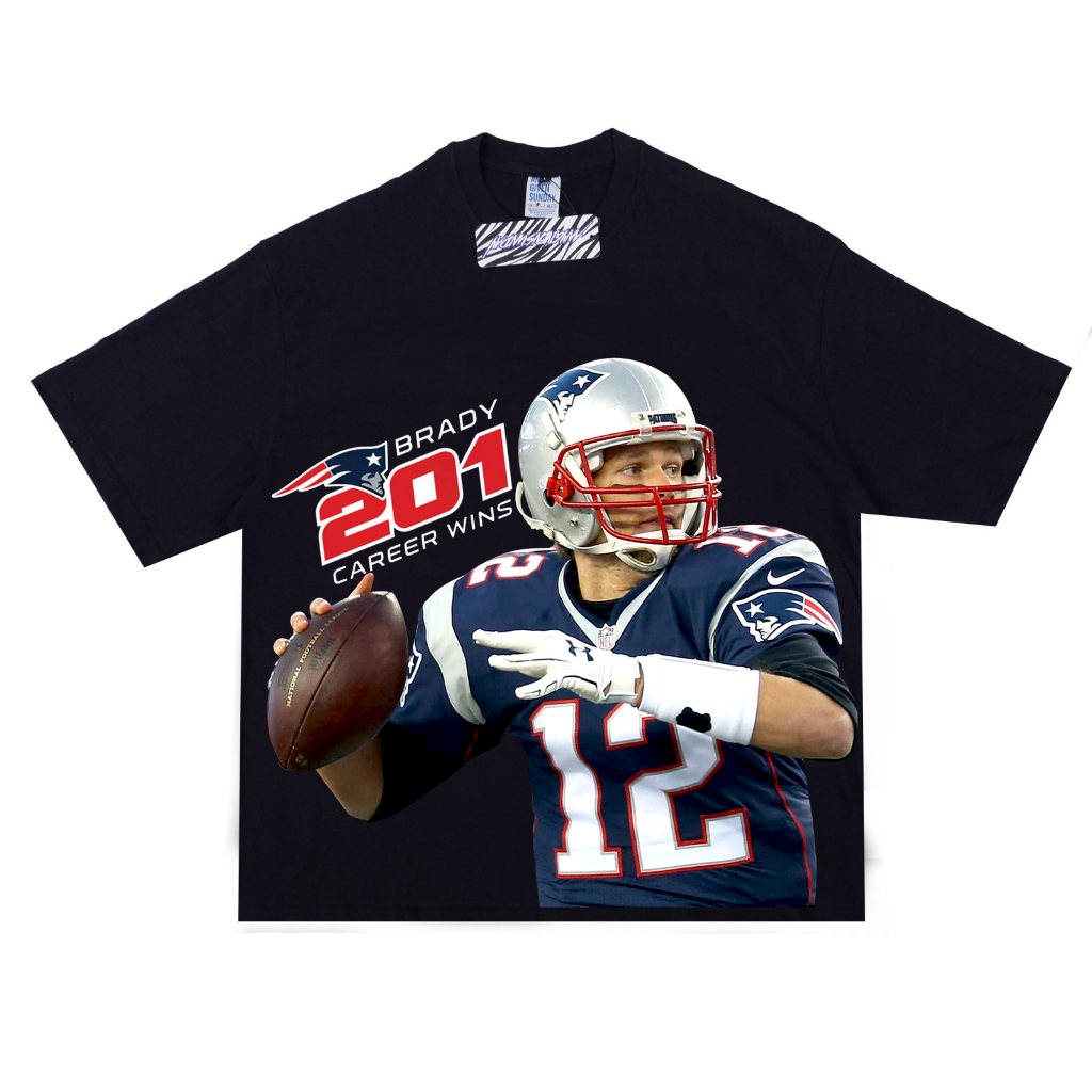 Tom Brady 201 Career Wins T shirt Patriots NFL Football Big Oversize Vintage Bootleg Any Given Sunday