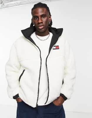 Tommy Jeans Flag Logo Reversible Sherpa tech Bomber Jacket In