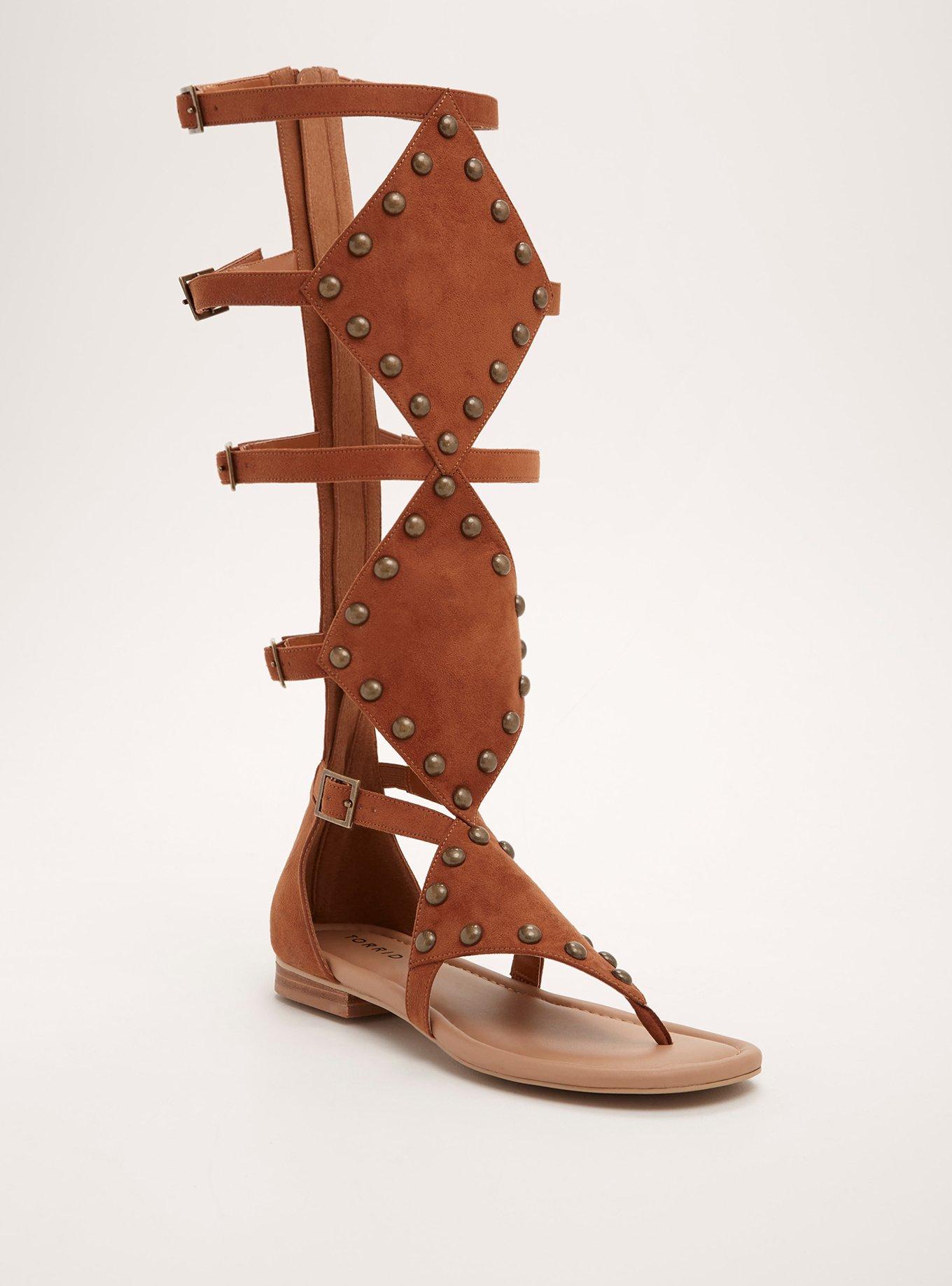 Torrid tall sales gladiator sandals, Plus Size Studded Knee High Gladiator Sandals Wide Width Torrid sales