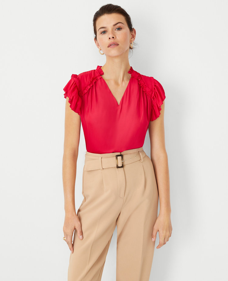 V neck sales ruffle top, Layered Ruffle V Neck Crop Blouse sales