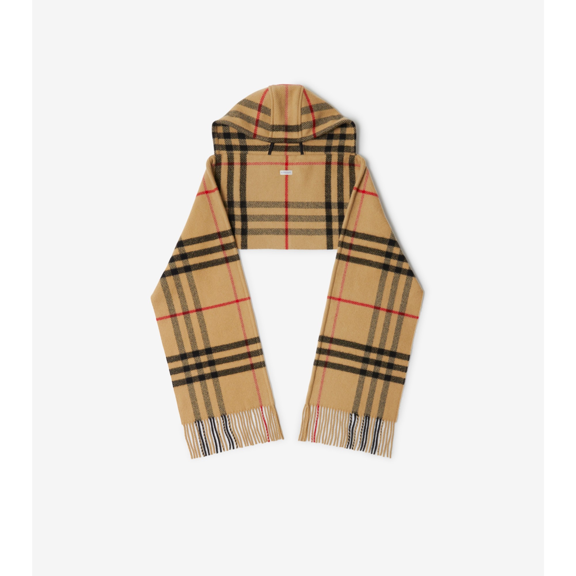 Check Wool Cashmere Hooded Scarf in Archive beige Burberry Official