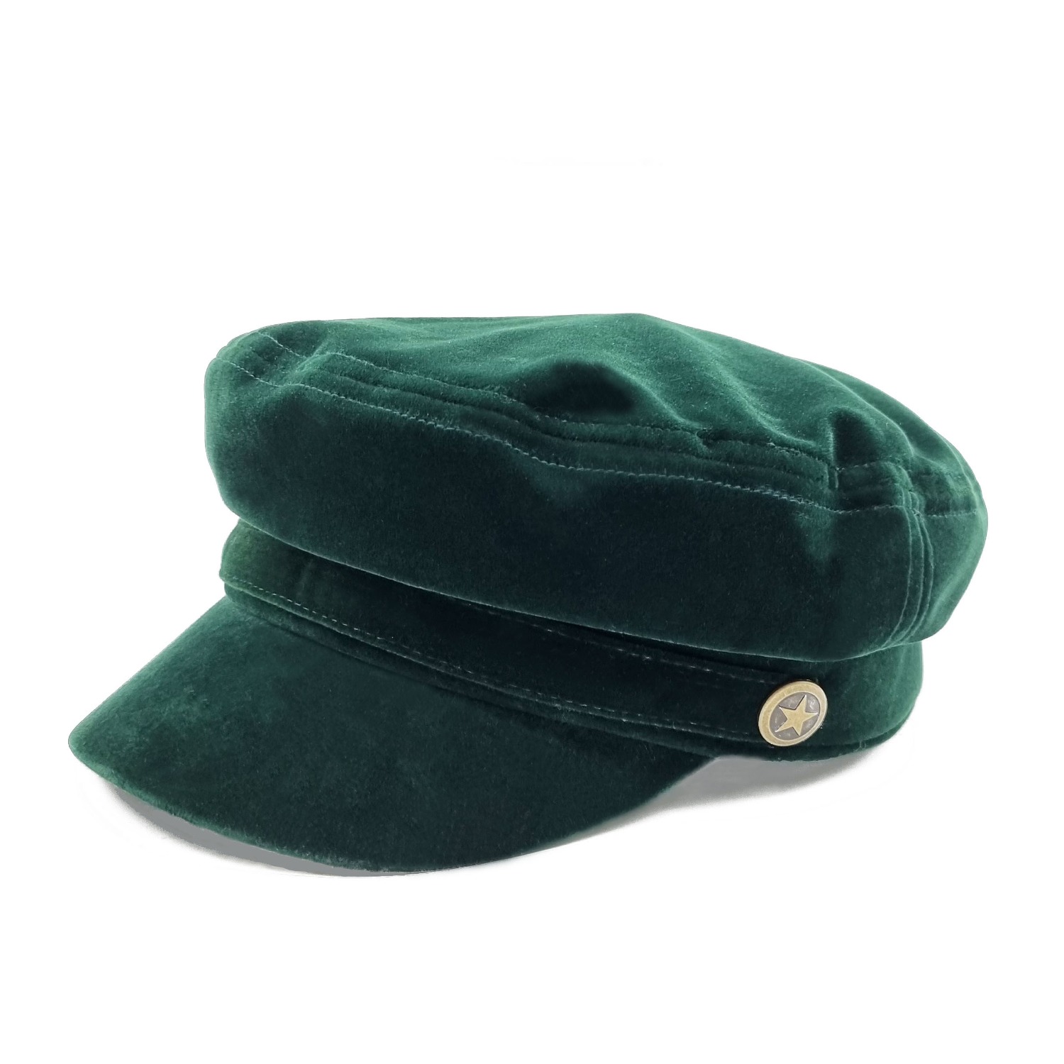 Hailey Velvet Baker Boy Hat Emerald NOOKI DESIGN Wolf Badger