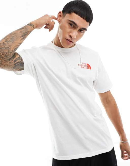 White and red sales north face t shirt, The North Face contour half dome back print t shirt in white red Exclusive to ASOS sales