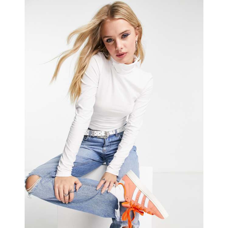 White long sleeve sales roll neck, WHITE Roll neck long sleeve bodysuit Womens Tops Select Fashion sales