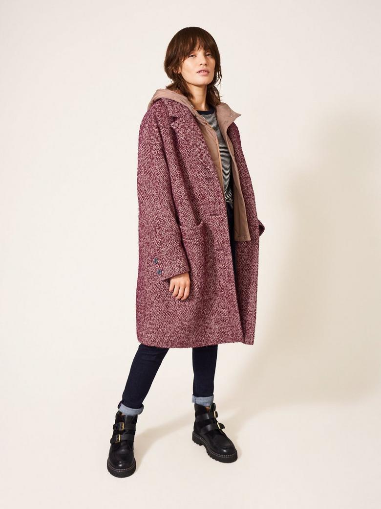 White Stuff Women s Izzy Tweed Coat Ladies Warm Knee Length Hooded Winter Jacket