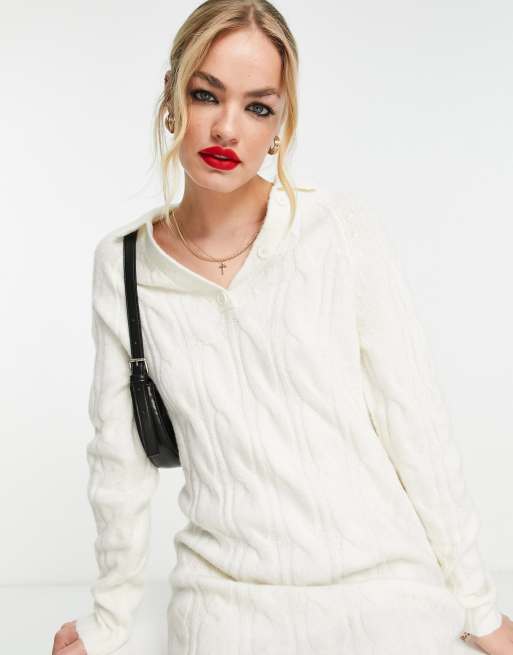 ASOS DESIGN knitted mini jumper dress with open collar in cable in