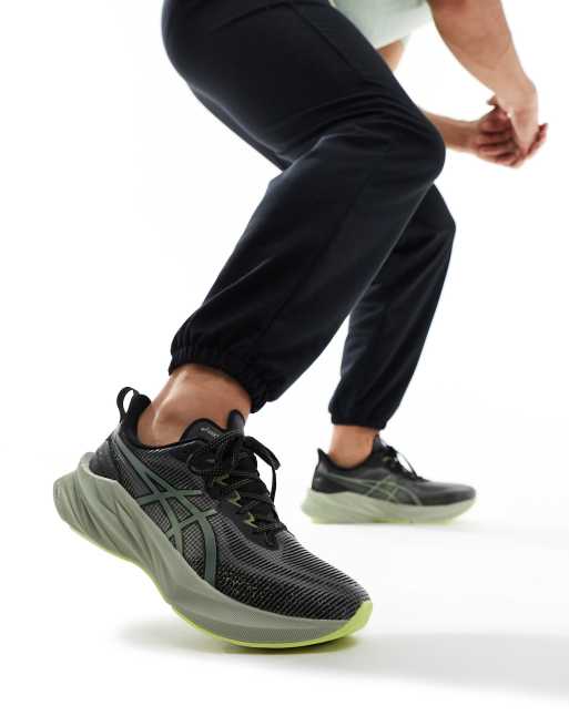 Asics Novablast 3 LE running trainers in black and lime ASOS