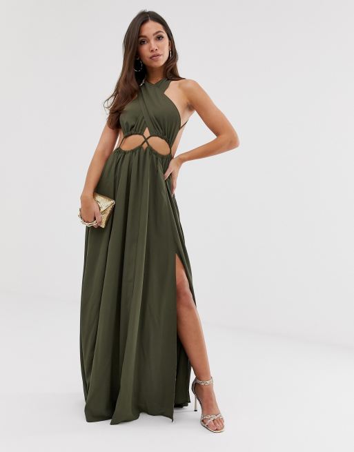 ASOS DESIGN Vestito lungo con scollo a incrocio e vita cut out