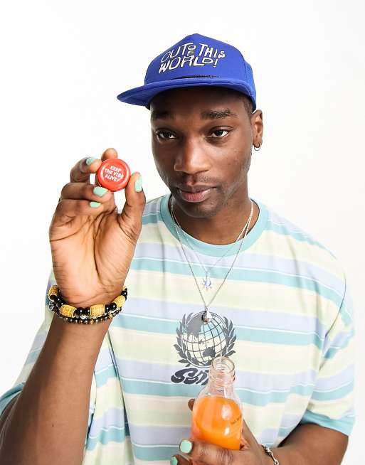 ASOS DESIGN trucker cap with contrast print in blue ASOS