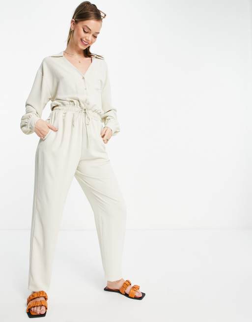 ASOS DESIGN woven drawstring jogger jumpsuit in beige