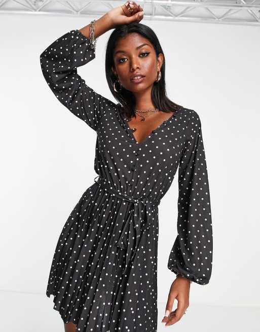 ASOS DESIGN long sleeve pleated mini dress with button detail in