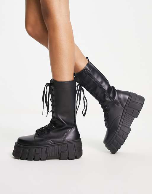 ASOS DESIGN Athens 3 chunky high lace up boots in black