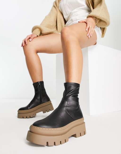 ASOS DESIGN Atlas chunky sock boots in black with tan sole ASOS
