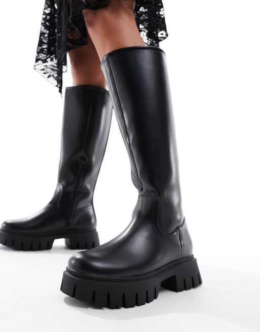 ASOS DESIGN Carter chunky flat knee boots in black