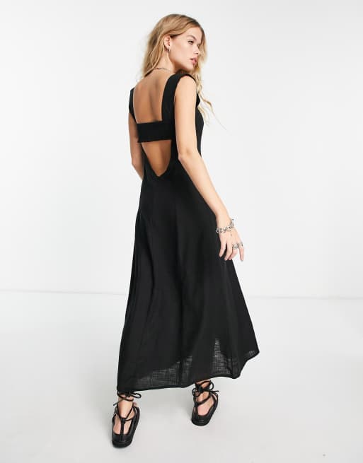 ASOS DESIGN sweetheart neck shirred back midi sundress in linen in black