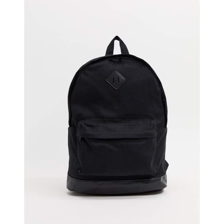 ASOS DESIGN canvas backpack with faux leather base in black ASOS