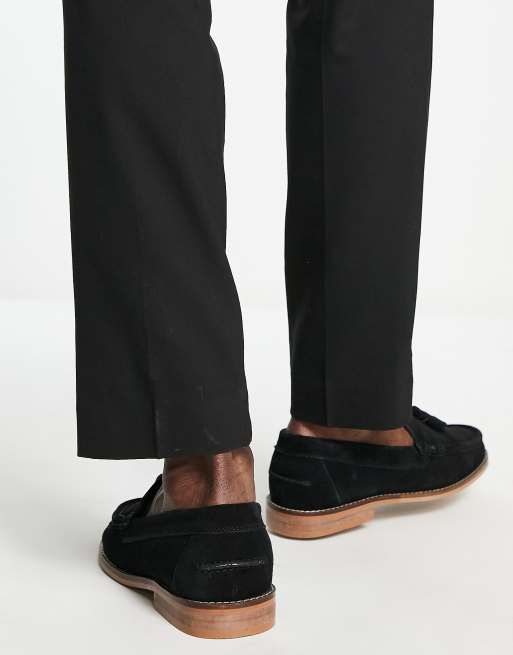 ASOS DESIGN tassel loafers in black suede leather with natural sole