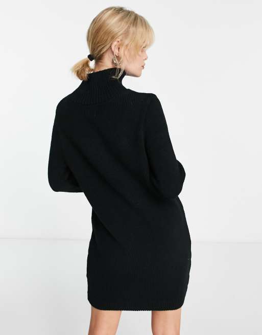 ASOS DESIGN knitted jumper mini dress with high neck in black