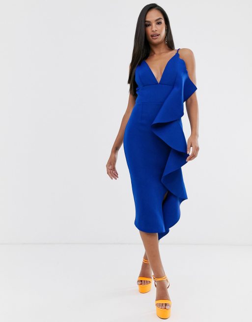 Asos blue sales scuba dress, Lavish Alice draped frill midi scuba dress in cobalt blue sales