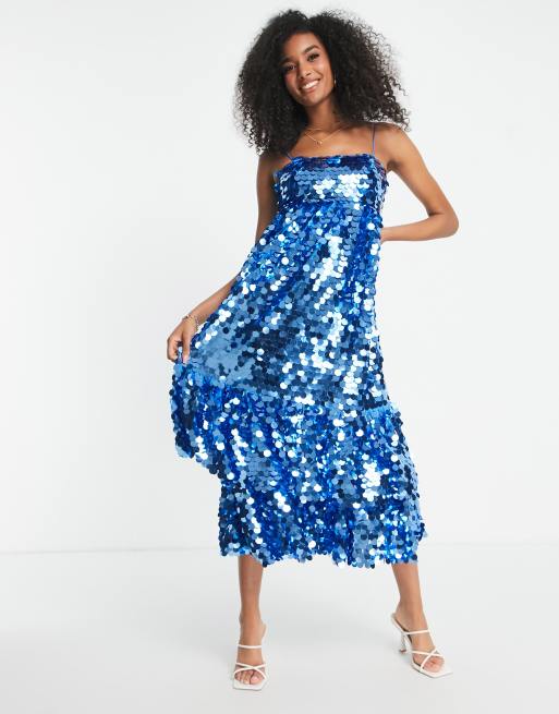 ASOS EDITION batwing all over sequin midi dress in bright blue