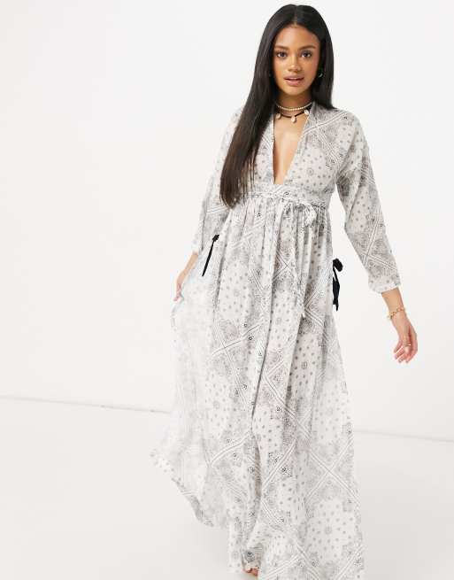 Asos boho sales maxi dress, ASOS DESIGN plunge long sleeve boho maxi beach dress in crinkle bandana print sales