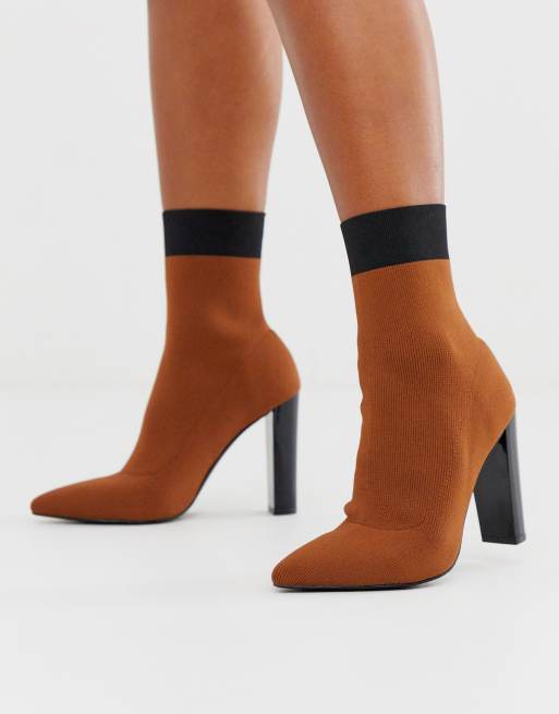 ASOS DESIGN Enhance Bottines chaussettes en maille talon carr Marron