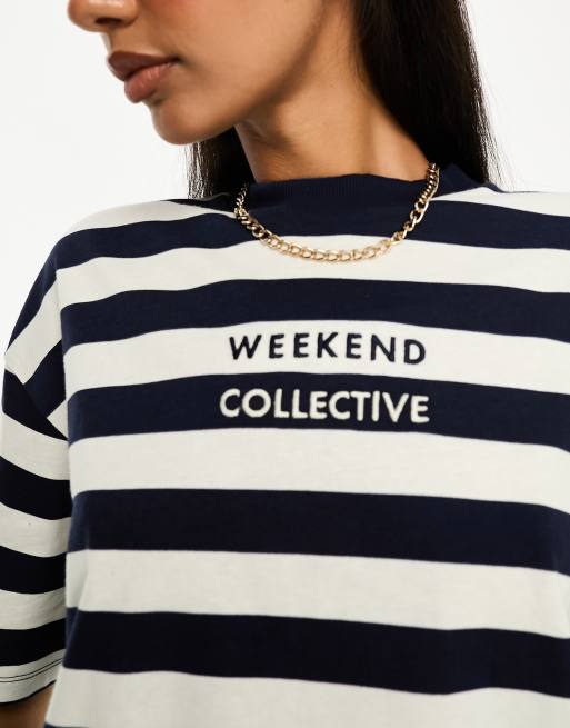 ASOS Weekend Collective breton stripe t shirt in navy and cream ASOS