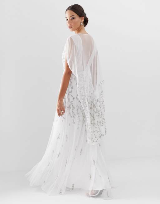 Asos cape sales wedding dress, ASOS DESIGN Curve embellished cape wedding dress WHITE sales