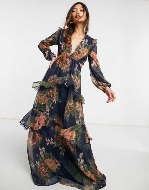 ASOS DESIGN maxi dress with long sleeve and circle trim in floral
