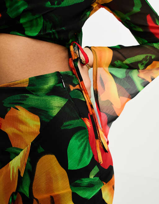 ASOS DESIGN jacquard chiffon top with tie detail co ord