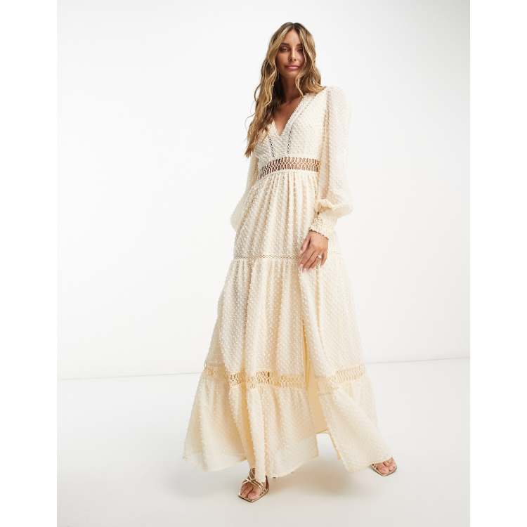ASOS DESIGN tufted dobby lace insert maxi dress in cream ASOS