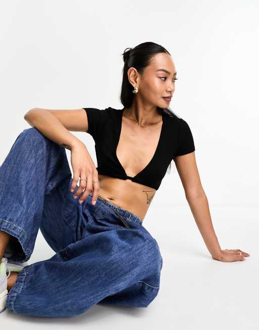 ASOS DESIGN super crop top with gathered tie detail in black ASOS