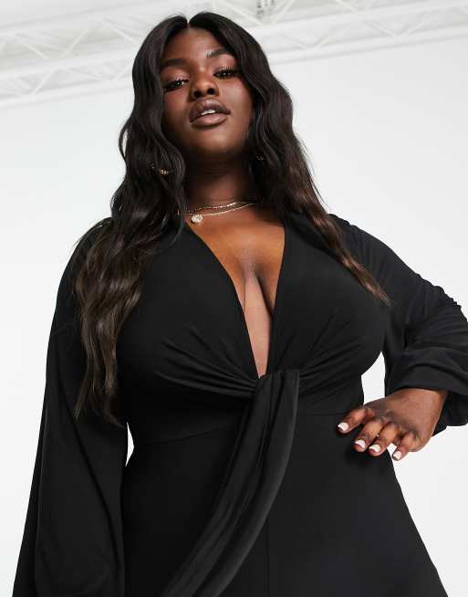 ASOS DESIGN Curve glam plunge tie front jumpsuit in slinky in