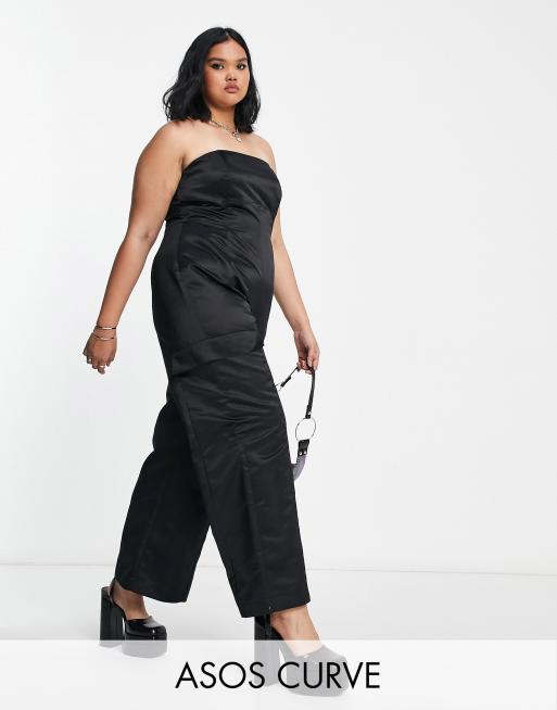 ASOS DESIGN Curve structured satin cargo jumpsuit in black