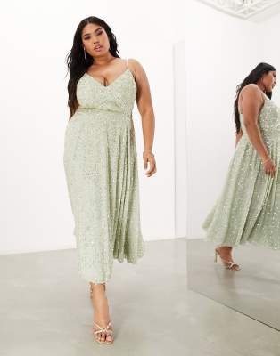 ASOS DESIGN Curve Bridesmaid embellished cami midi dress in sage green